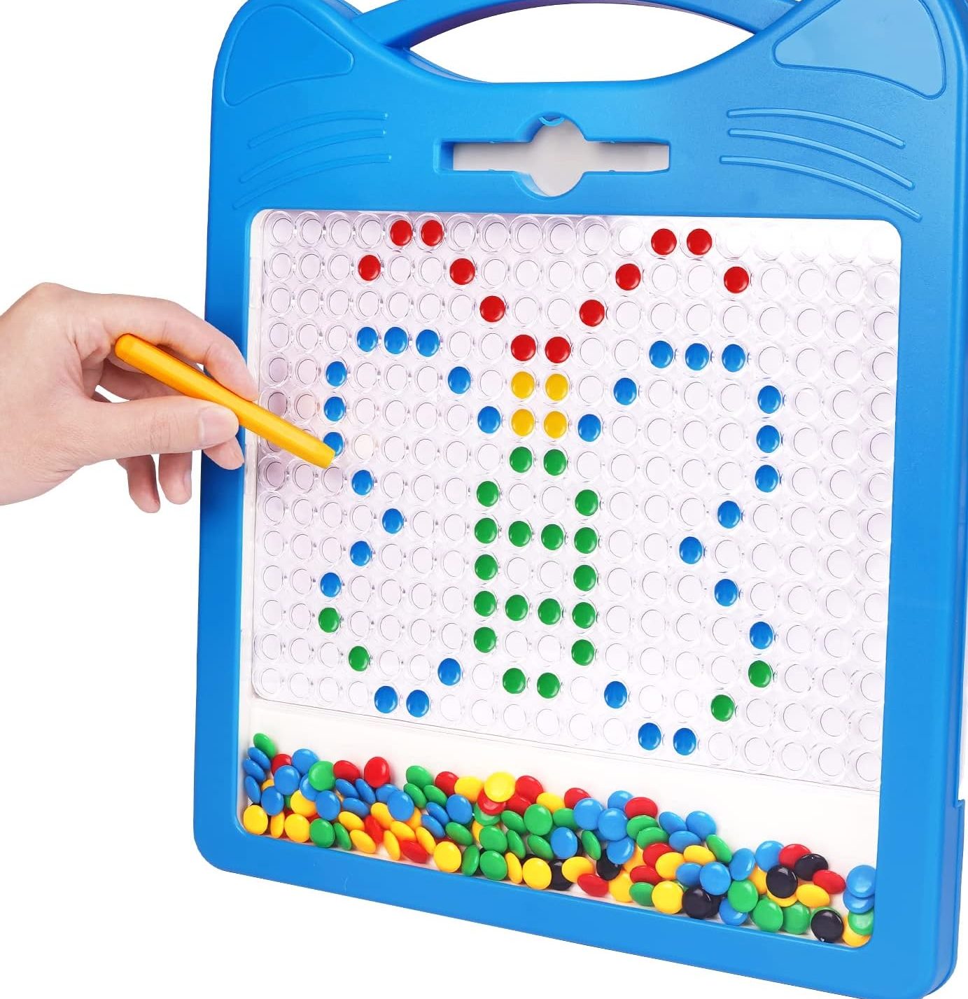 One of my favorite Montessori toys for young children is the Magnetic Drawing Board for Kids 3+ Years- Toddler Doodle Board with Magnetic Pen, Colorful Beads & 10 Reference Cards. Children have a blast using the magnetic pen and moving the colored beads around the board making different shapes and patterns. Included are reference cards, that the kids can look at to mirror the images should they choose to do so. It’s lightweight and portable, perfect for the long car videos for vacation or to Grandma and Grandpa’s house!