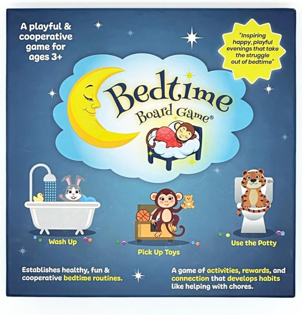 The Bedtime Board Game is a present for young children and parents alike. Children enjoy playing before bedtime, and parents like how the game builds connection, reduces screen time, promotes hygiene routines and creates a calming energy in the household. Bedtime Board Game is transforming nights of chaotic stress, into relaxing bedtime routines. As bonus, this game can also be played with babysitters, older siblings and grandparents, to promote a fun bonding experience.